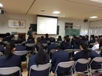 昨日の授業では、社会科担当教諭から日本や世界のエネルギー事情について講義があり、化石燃料や再生可能エネルギーをめぐる現状に真剣に耳を傾けていました。その後の話し合いでは、「柏崎の強みを生かしてCO₂を減らすには?」「自分たちにできることは?」といった意見が活発に出されました。