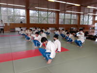 授業は第一中学校前にある武道館を会場に畳の上で安全に配慮しながら、礼法や受け身などの基本動作を中心に取り組んでいます。