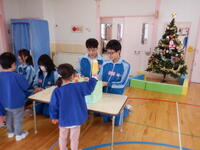最初は少し緊張した様子の生徒も、手作りおもちゃを使って一緒に遊び始めると、すぐに場が和み、教室には笑顔と温かい声が広がりました。