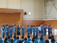 本日、体育館で県駅伝大会に出場する選手の激励会が行われました。これまでの練習の成果を胸に、自信に満ちた表情で決意を述べる選手たちの姿に、会場からは大きな拍手が送られました。 応援生徒代表からは、「一中の代表として誇りをもって走ってください」と温かいエールが送られ、学校全体が一つになって選手を後押ししました。
