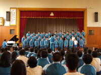 本日、昼休みに柔剣道場で3学年の学年合唱「名づけられた葉」が披露され、1・2年生が鑑賞しました。