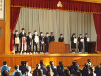 本日の全校朝会では、北信越中学校駅伝大会に出場した選手の健闘をたたえる表彰と、英語検定・漢字検定の合格者への表彰が行われました。どの生徒もこれまでの努力が実を結び、堂々と賞状を受け取る姿が印象的でした。