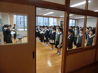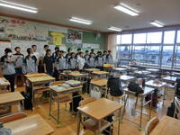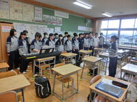 2年生・・・3クラスとも教室で合わせ練習です。3クラスの歌声が激しく混じり合っています(苦笑)