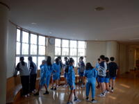 3年生・・・3年1組がステージ割り当て練習です。当日は会場を群青色に染めてね!