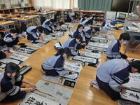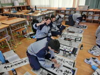 そして、国語の授業では「書道」を行っています。休み時間は、みんな習字道具をもって多目的室に大移動です。