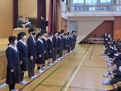 まずは、生徒会の新執行部長&本部役員の認証式です。
