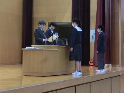 そして、表彰・・・。漢字検定と、水泳の歌代さんの「新潟日報スポーツ賞」です。