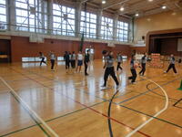 次は極寒の体育館…2年生が元気にバスケのシュート練習です。私もちょっと混じってしまいました。ゴメン(苦笑)