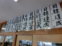 1年生は「平和の光」、2年生は「目標達成」、3年生は「初志貫徹」がお題でした。