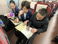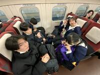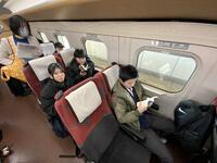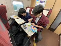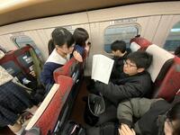 いよいよ車内では、お待ちかねの「クイズ大会」がスタートしました! 学習係のメンバーがこの日のために準備した、こだわりの京都クイズに班ごとに挑戦。なんと優勝班には「豪華景品」が用意されているとの噂もあり、どの班も真剣そのものです!楽しみながら、これから向かう京都への知識を深めています。
