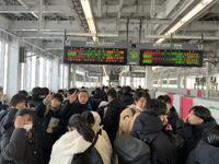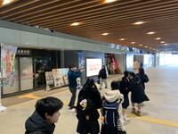 それにしても驚いたのは、雪の量です。お隣の柏崎市に比べても上越は一段と雪深く、景色が一変したことに一同びっくり!また、駅のコンフォースには隣の学校の皆さんの姿もあり、出発前の駅舎はとても賑やかで活気にあふれています。