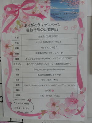 テストが終われば、「3年生ありがとうキャンペーン」です。