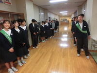毎朝、寒風吹きすさぶ玄関で、登校してくる生徒&職員に声掛けをしてくれています。