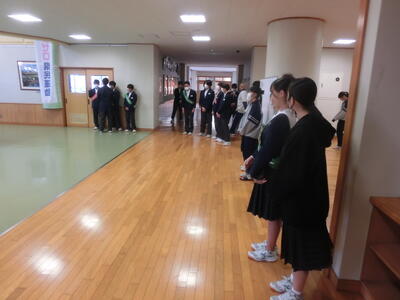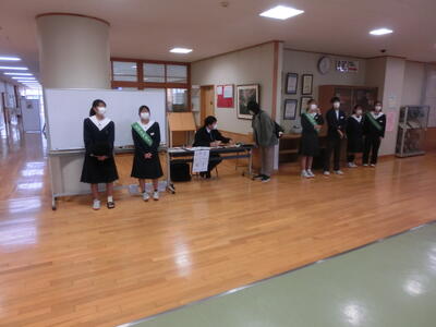 今日は生徒朝会からスタートです。生徒会役員選挙の受付期間が終了し、告示されました。