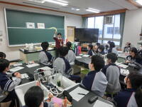 学校を回っていたら、1年生の理科の授業でまたなにやら楽しそうなことをやっていました。