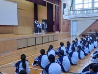 火曜に予定されていた生徒朝会・・・。もろもろあって延期となり、今日行われました。