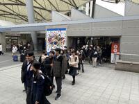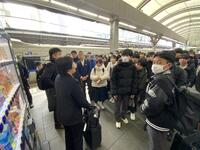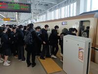 ここからは在来線に乗り換え。ホームには一般の乗客の方もたくさんいらっしゃいます。 都会の大きな駅、迷子にならないように行動できるかな?