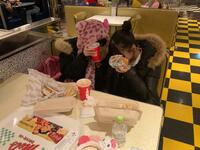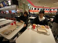 食事を食べている人、食べ終わって最後を楽しんでいる人。