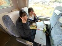 京都を後にし、サンダーバードに乗って帰路に着きました。 少し遅めの昼食は、幕内弁当です。係の生徒たちが手際よく配ってくれたお弁当を、みんなで美味しくいただきました。