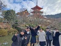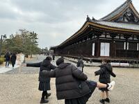少し疲れが見えていた生徒たちも、ガイドさんの楽しいお話と、窓の外に見える京都らしい風景、すっかり観光モードに切り替わったようです。最高の締めくくりになるよう、歴史の舞台へ!