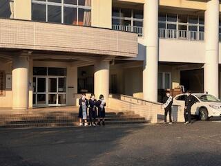 寒波が収まり、秋晴れの下、熱心に挨拶をしていました。みんな、頑張れ!