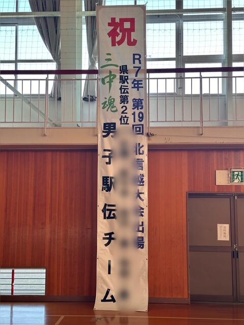 選手たちを鼓舞すべく、ささやかですが、学校で懸垂幕を発注したものが届きました。激励会で全校にお披露目をし大会へのエネルギーにしてもらえたらと思います。全校生徒の思いを乗せて、颯爽と信濃路を駆け抜けて欲しいものです。