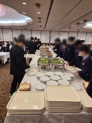 ようやく、ホテルに着いて待ちに待った夕食。夕食はビュッフェスタイルで、好きなものを取り放題です。(取りすぎて残すのはマナー違反!)