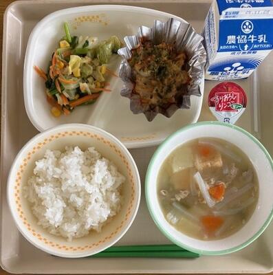 11月25日(火)の給食は、マヨチーちくわ、梅あえ、とん汁、ごはん、牛乳でした。もりもり食べて、インフルエンザに負けないからだをつくりましょう。