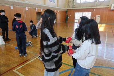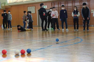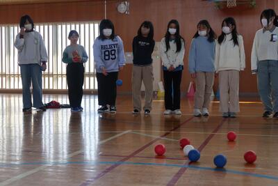 6年生は4年生と「ボッチャ」をして楽しい時間を過ごしました。体育でボッチャをいろいろな学年が楽しんでいます。ボッチャは白い的玉に、いかに近づけるかを競うゲームです。力だけでは勝てない、頭脳もフル回転のスポーツです。
