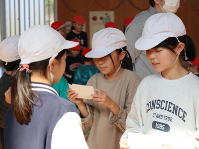 5年生を中心にお世話をしてきた柿活動。今年は、残念ながら二田小で収穫した柿ではなく、西山柿生産組合の方から分けていただいた柿を5年生が渋抜きをしてくれました。その柿が、5年生から全校の子どもたちへ配られました。11月16日、ラ・プランタンさんとのコラボスイーツ販売に向け、準備に張り切っている5年生です。