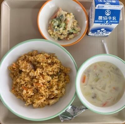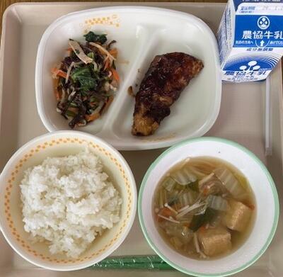 1月9日の給食は、白みそ雑煮、松風焼き、切干大根の五目なます、ごはん、牛乳でした。白みそ雑煮には紅白の白玉もちが入っていました。1月の給食目標は「感謝して食べよう」です。感謝の気持ちを忘れず給食を楽しみましょう。