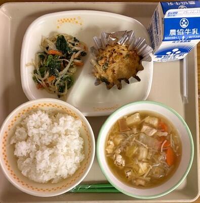 12月8日(月)の給食は、千草たまご焼き、すき焼き風煮、ごまあえ、ごはん、牛乳でした。今日の給食は、かしわざき食育5か条給食でした。ごちそうさまでした。