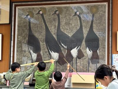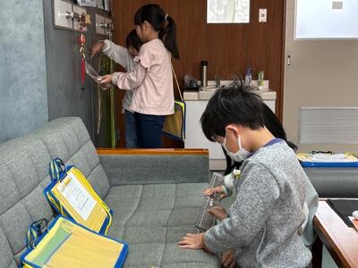 2年生は算数で「長さ」の学習をしています。「自分の身長は、両手を広げた長さと同じ」という体の秘密を確かめた子どもたち。定規だけではうまくはかれないので、紙テープを用いながら長さとつながりました。今度は、校長室にある絵画や応接テーブル、大切な文書を保存する大きな耐火金庫等の長さを測ってみたいと校長室に訪れた子どもたち。「この絵画は3mくらいありそうだな、よし、確かめよう」と仲間と協力して測っていました。