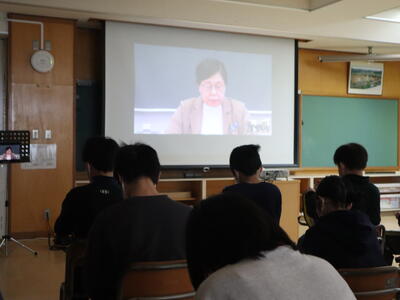佐渡市立八幡小学校5・6年生、小浜市立小浜小学校6年生と二田小の3校をオンラインでつなぎ、拉致問題について考える会議が行われました。最初に曽我ひとみさんのお話をお聴きしました。その後、感想を交えながら自分たちにできることについてグループ協議しました。二田小には蓮池薫さんも来校していただき、子どもたちの話合いに参加してくださいました。内閣官房拉致問題対策本部事務局の方もZoomで参加されていました。3校の子どもたちの今の考えを届けることができました。6年生のNさんは、「今まで一緒にいた家族からある日いきなり離されると寂しいし苦しいし、とても悲しいと思った。今の幸せは当たり前じゃないと思った。好きな時に好きな物を食べたり、買ったりするのも当たり前じゃない。今日の会議をやったから終わりじゃなくて、このような活動をいろいろな人に発信していくことがとても大事だと思った。」と感想をまとめていました。