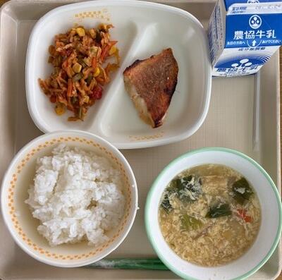 2月17日の給食は、たまごスープ、赤魚のピり辛焼き、洋風切干大根炒め、ごはん、牛乳です。和食ですが、子どもたちがおいしく食べられるような工夫がされていました。インフルエンザB型が市内では流行っていると聞いています。もりもり食べて、栄養をつけて予防に努めていきましょう。