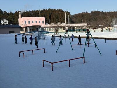 子どもたちの休み時間の過ごし方は様々です。図書室で本を読んだり、教室で絵を描いたり、体育館で鬼ごっこやドッジボールをしたりして遊んでいます。天気のよい日は、用務員さんがつくってくれた雪山「二田スノーパーク」でそり遊びを楽しんでいます。移送図書館の日は、ソフィアセンターの本を選んで借りたり、読んだりしています。