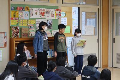 インフルエンザが拡大しないよう、放送で若草朝会が行われました。赤い羽根共同募金について詳しく知ってもらえるクイズを出題しました。児童玄関で赤い羽根共同募金活動を環境委員会の子どもたちが集めています。1日も早く全校児童がそろって募金活動ができるといいですね。