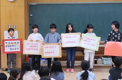いじめ見逃しゼロスクール集会が行われました。各学年が学級で話し合ったことを発表しました。1年生は昼休みにみんなで遊ぶ日をつくっていること、3年生はやさしさを進んでみつけようとしていること、6年生はいじめといじりについてイラストを用いながら発表していました。いじめに軽いも重いもありません。互いの違いを認め合える、そんな学校を目指しています。5年生の運営委員会の皆さんの進行で行われました。今年も残り11日。仲間を大切に、そして、自分を大切に過ごしていきましょう。