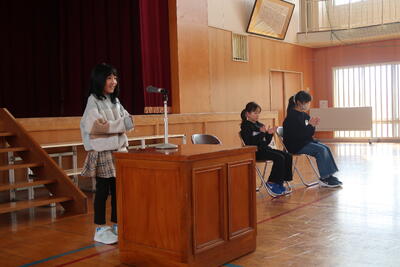 週末は読書支援員さんからの読み聞かせタイムです。今日は4年生が図書室で読み聞かせをしていました。来週から3月が始まります。様々なことに感謝の気持ちをもち、あたらしい学年に向けて準備をしていく1か月が始まります。6年生は小学校生活最後の1か月。1日1日を大切に過ごしていきましょう。