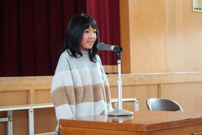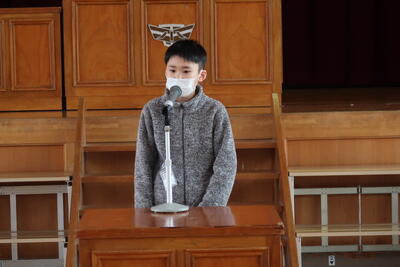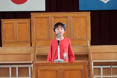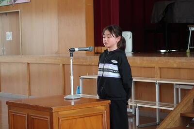 3月の全校朝会は、たくさんの表彰から始まりました。書き初めの会長賞、俳句の入選、優秀スポーツ競技者賞の表彰を行いました。たくさんの児童が体育・文化の面で大活躍しています。3月は、「感謝」「やりきる」「認め合う」、この3つのことを大切に、充実した3月をみんなでつくっていきましょう。