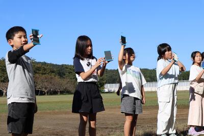 2年生では、持久走やリレーが行われていました。表情から真剣さと楽しさが伝わってきます。3年生では、光の反射の授業が行われていました。校舎に貼られた「的」に光をあてながら、光の反射について楽しく学ぶ姿がありました。秋晴れを感じながら授業や休み時間を楽しんでいた子どもたちです。