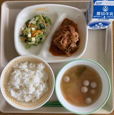 10月15日(水)の給食は、ぶた肉のしぐれ煮、ブロッコリーのごまあえ、しりとりチゲスープ、ごはん、牛乳でした。しりとりチゲスープには、たくさんの具材が入っていました。献立表には、「じゃがいも」からはじまるしりとりチゲスープと献立表に書いてあったので挑戦してみました。ちなみに私は、じゃがいも⇒もやし⇒し・・・。ここで終了でした。
