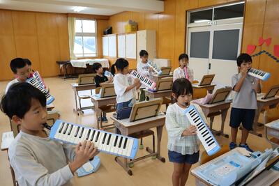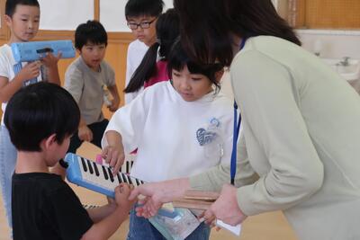 学習発表会のリハーサルが行われました。といっても、ステージの出入りや、初めの言葉等の流れを全校で確認しただけで、発表内容はどの学年も当日までの秘密です。楽しみですね。2年生は、音楽の学習成果も上手に取り入れた発表内容になっていました。音楽専科の先生の力もお借りしてすてきなステージになっています。「みんなでつくる」が合言葉の学習発表会。子どもと教師、みんなでつくっています。(写真は2年生の音楽の様子です。)
