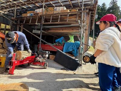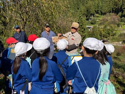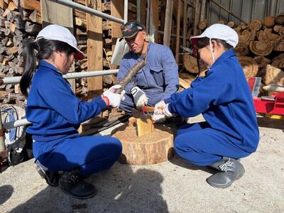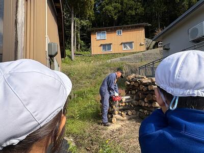 3年生は西山町別山周辺の里山へ旅してきました。子どもたちは、カタクリの花についてお話をききました。アリが種を運び、土の中深くにうめること、山を人の手できれいに手入れしないと、土の中の球根が目覚めてくれないこと、きれいに手入れすることで、カタクリの花が咲き、群生地ができることなど、写真を交えて学びました。薪割りでは、チェーンソーできる様子、薪割りの機械で割る様子、最後は、鉞を使って自分たちで薪を割る体験もできました。最後は、みんなで、「手のひらを太陽に」を歌い、終わりました。「すべての命を大切に」の思いが里山へ響き渡っていました。子どもたちに丁寧に教えてくださった栗田さんはじめ、里山保存会の皆様、本当にありがとうございました。