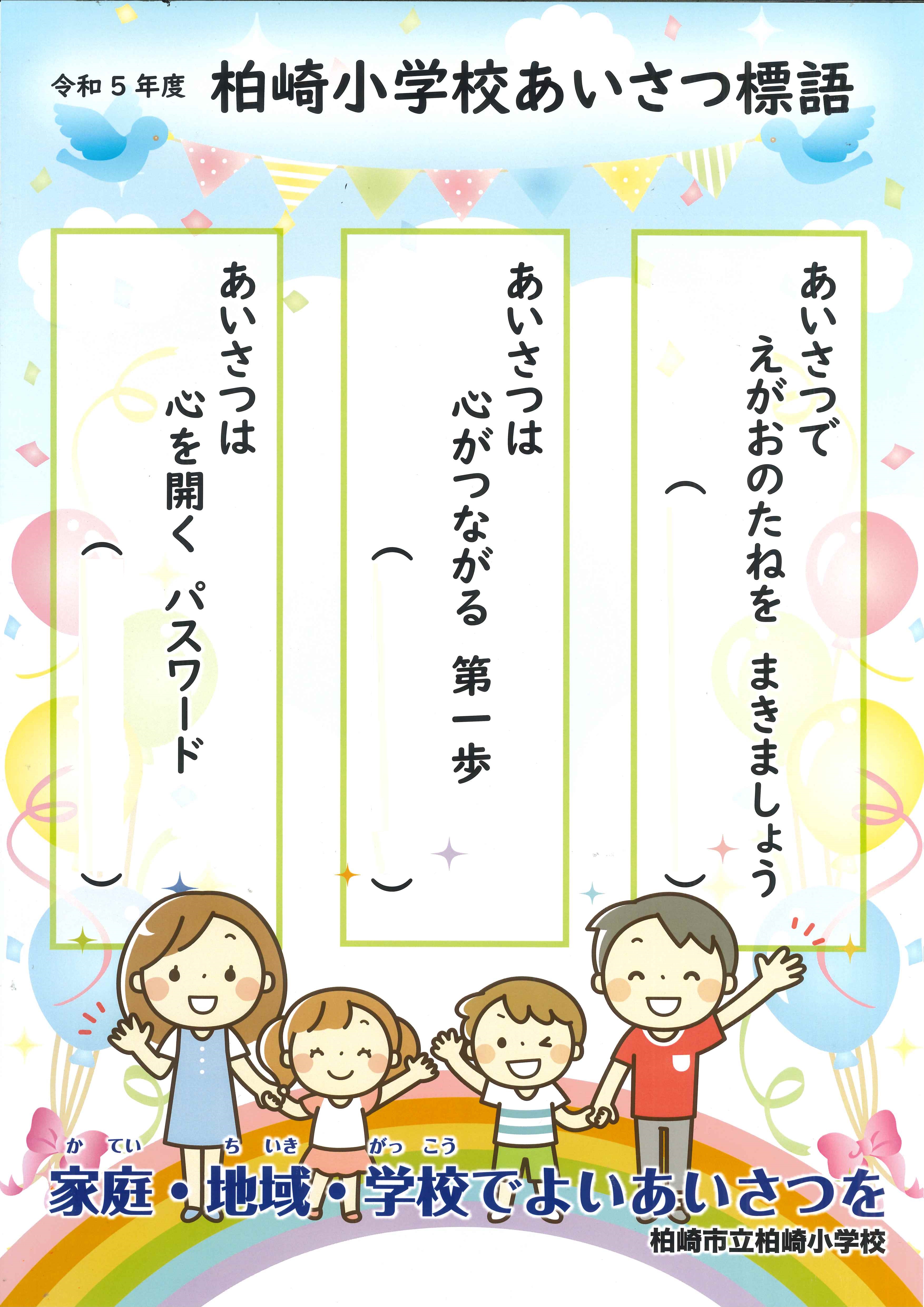 明るいあいさつがあふれる学校にしようと、児童があいさつ標語を考えました。家庭でも、地域でも、そして、学校でもあいさつの輪が広がり、「つながリアン(相手のことを思いやれる人)」が増えることを願って取り組んでいます。