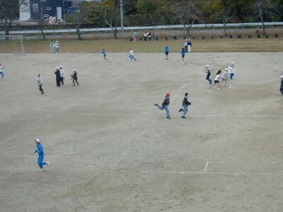 委員会の説明の後、子どもたちは元気いっぱいにグラウンドを駆けめぐりました。