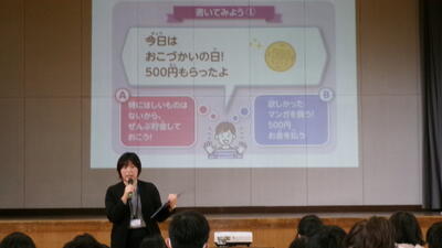 3・4年年生は、新潟県労働金庫の方々から講演をいただきました。お小遣い帳の書き方を演習し、お小遣いを計画的に管理することを学びました。また、友達同士のお金の貸し借りやネットゲームへの課金について考え、お金にまつわるトラブルに巻き込まれないようにする意識を高めました。