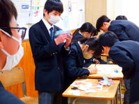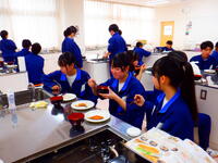 2年生→調理実習を行いました。今日は1クラスでしたが、今週末にかけて2年生の他のクラスも行います。メニューは、鮭のムニエルとトマトのミネストローネ。和気あいあいと調理・会食する様子がほのぼのしていました。冬休みには、家族にも振舞えそうな腕前でした。