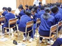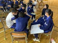 日本ゲートキーパー協会より講師においでいただき、2年生がコミュニケーションのスキルを高める学習を行いました。声かけにはいろいろな種類があり味方だと感じられるメッセージを贈ろう、自分が困った時には周囲に相談しよう等、隣り合う生徒同士との交流活動を交えながらアドバイスをいただきました。東中学校では11月を人権強調月間に位置づけていて、授業でも人権について考える機会が増えます。今日の学習も人権の学習も関連していることを理解して、実践に結びつけていくこと、また、その輪が広がることを期待しています。