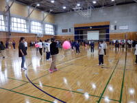 PTA親子レクで、2年生がふらば~るに挑戦しました。ふらば~るは、楕円形のようなハート形のような不規則な形のビーチボール的なものを使い、バレーボール風のルールで行うゲームです。50名以上の保護者の皆さんから参加いただきました。バレーボールがうまくても、ふらば~るがうまくいくとは限らない。ワンバウンドルールもあって、年齢、性別、身長の差は簡単に埋められるおもしろいスポーツです。大人も子供も夢中になった楽しい午後のスポーツタイムでした。